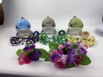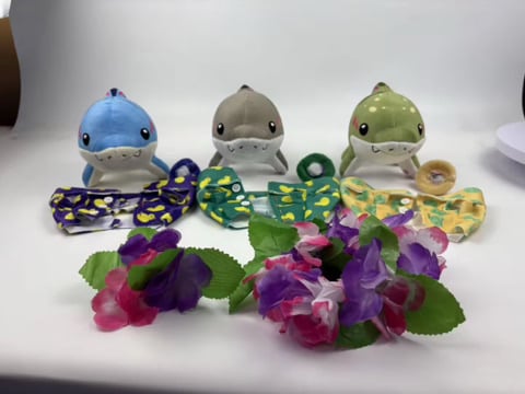 A soft 20 cm (Around 8 inches) plushie for your collection! Not one, not two but three different summer-loving sharks to brighten your day! His super soft plush exterior with embroidered eyes, cute toe beans and detachable fancy hat will make your heart soar!